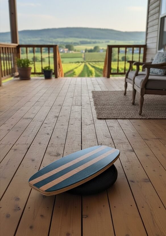 - אפשרויות תרגול: ניתן להשתמש בבורד לתרגילים בישיבה, וכן להתחיל את התרגול בעמידה עם כרית איזון (פיתה) או אפילו כרית רגילה מהבית ליצירת תנועה מינימלית ובטוחה.